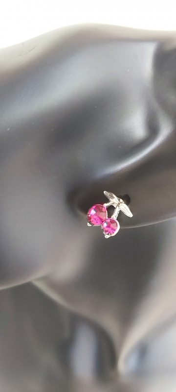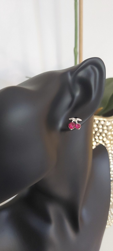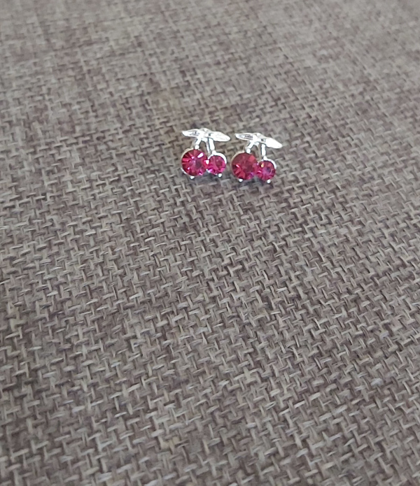 Cute rhinestone cherry stud earrings